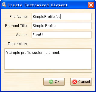 You can modify the information as you want. After clicking the "Ok" button, the custom element is created and will be saved as an .fce file. Also it will be listed in the "Custom Elements" category, thus you can use it like other elements.