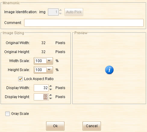 Here you can add comment to the image, resize the image or make it gray scale. Once you perform the changes in this window, all elements that reference this image will be updated as well.