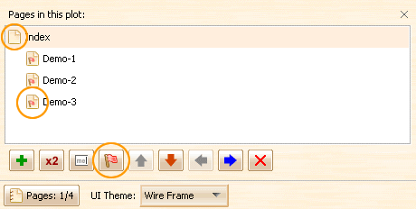 We can edit the action for page from the page management window (see figure above). The button with red flag icon can bring up the action editor. The page with action defined will also have a small indicator on its icon.