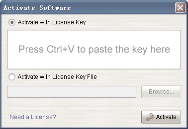 If you have the license key file (pure text file that contains the license key), you can also select the “Activate with License Key File” option: