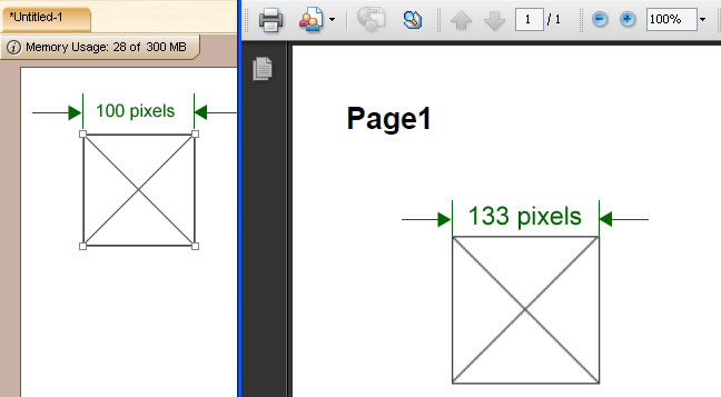 It is because we can only control the dot (pixel) number of the PDF, as I know the PDF document doesn’t include the preferred DPI information. So we don’t have a way to suggest Acrobat Reader to use a specific DPI.