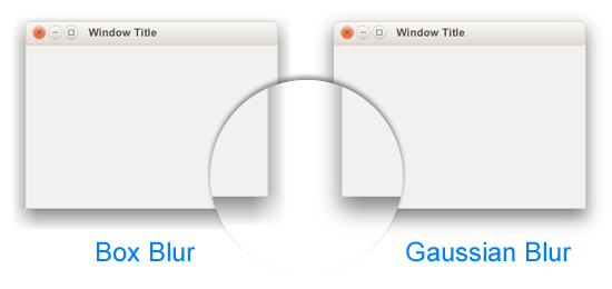 How much nicer will the Gaussian Blur be? The figure below can give you an example. It is the Window element in “Ubuntu” UI theme, and the shadow gets rendered with box blur (left) and Gaussian blur (right).