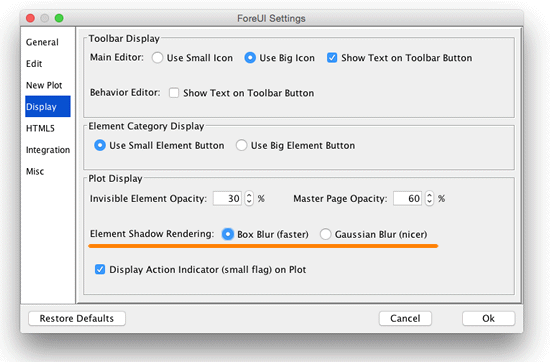 Shadow for element  is fully supported since version 4.0. By default the shadow is blurred with box blur algorithm to get better rendering speed. Now you can choose Gaussian blur algorithm if your machine is fast enough. The new option is available in the settings window, under the “Display” tab: