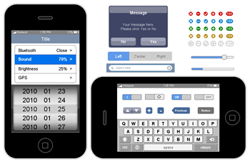 Title bar, search bar, slider, progress bar, tabs… All these new elements are very useful for creating iPhone app mockup.  Some of them are even interactive, which means you can interact with them in the DHTML simulation.